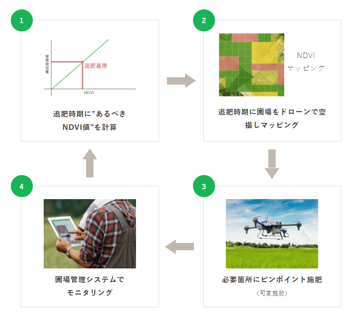 . Bằng cách sử dụng máy bay không người lái để xác định vị trí bón phân bổ sung, có thể đạt được sự phát triển đồng đều.