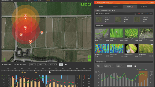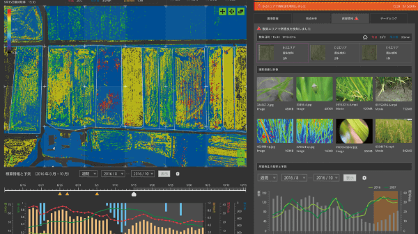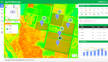 Hơn nữa, OPTiM đang hợp tác để trực quan hóa dữ liệu thực địa như lượng mưa, nhiệt độ và ánh sáng mặt trời, cũng như phân tích dữ liệu môi trường như thời tiết và đất để tối ưu hóa việc quản lý thực địa.